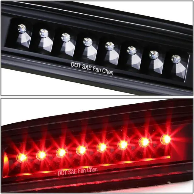 Our LED third brake light is a quick and easy way to dress up your pickup truck. When lit, the bright LEDs (Light Emitting Diodes) are illuminated, and shine up to ten times brighter than standard light bulbs. Even when the brake is not pressed, the integrated cargo light gives off plenty of white light to view your gear in the truck bed. The LED third brake light has a durable polycarbonate lens with free form reflector, and available with either the Clear lens or custom Smoked lens.