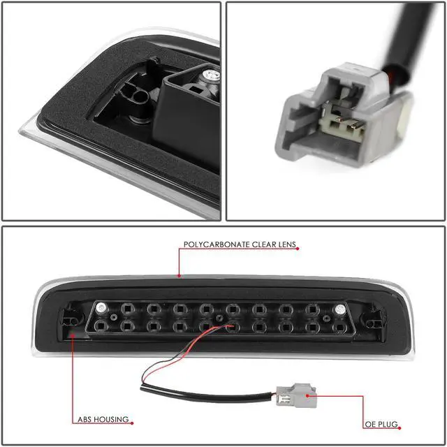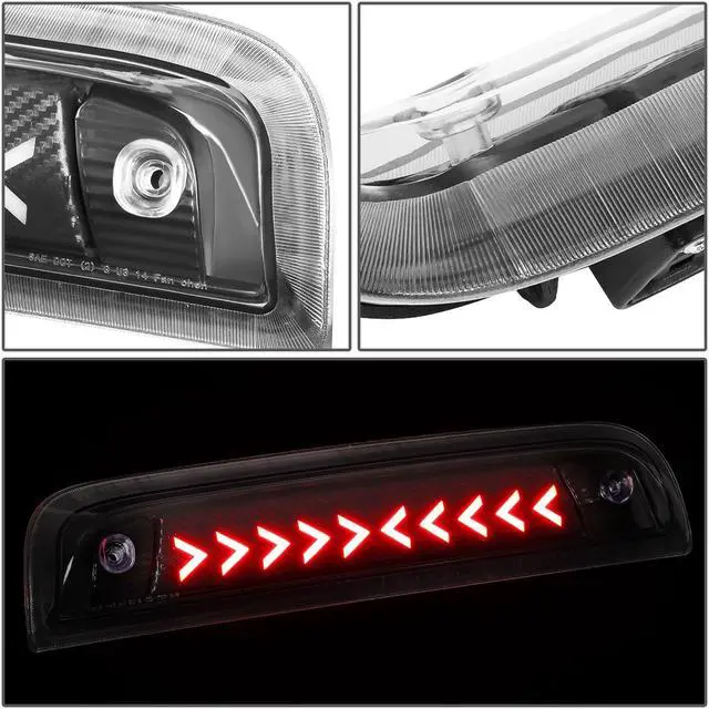 Our LED third brake light is a quick and easy way to dress up your pickup truck. When lit, the bright LEDs (Light Emitting Diodes) are illuminated, and shine up to ten times brighter than standard light bulbs. Even when the brake is not pressed, the integrated cargo light (if equipped) gives off plenty of white light to view your gear in the truck bed. The LED third brake light has a durable Polycarbonate Lens with free form reflector, and available with either the Clear lens or custom Smoked lens.