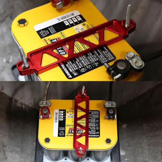 Upgrade your engine bay with our high quality anodized aluminum battery tie down. This item is designed to keep your battery held down securely and they come in multiple colors to add an aesthetically appealing and cleaner look to your engine bay.