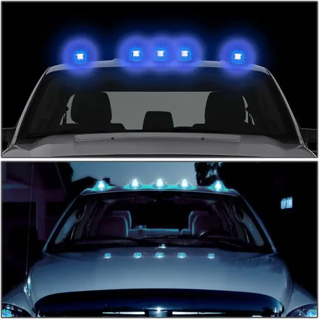 DNA Motoring CBL-FSD99-BK-B For 1999 to 2016 Superduty 5 X LED Cab Roof Top Lights + Wiring Harness (Black Housing Blue LED) 07 08 09 10 11 12 13 14 15