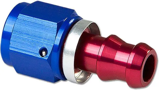 Flare Union Adapters are made of high quality and light-weight T-6061 aluminum. These fuel system fittings have anodized finish for strength and durability. This 180-Degree fitting has removable head for both push-on or twist-lock applications. It is easy to connect automotive fuel lines with this adapter.