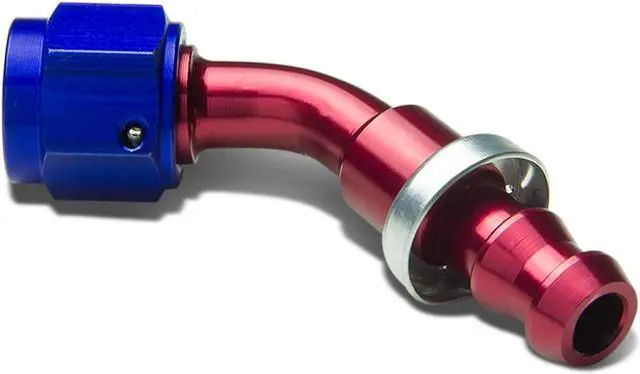 Flare Union Adapters are made of high quality and light-weight T-6061 aluminum. These fuel system fittings have anodized finish for strength and durability. This 180-Degree fitting has removable head for both push-on or twist-lock applications. It is easy to connect automotive fuel lines with this adapter.
