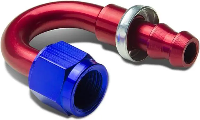 Flare Union Adapters are made of high quality and light-weight T-6061 aluminum. These fuel system fittings have anodized finish for strength and durability. This 180-Degree fitting has removable head for both push-on or twist-lock applications. It is easy to connect automotive fuel lines with this adapter.