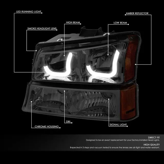 - Package Includes: 1 X Pair of Headlight & 1 X Pair of Parking / Turn Signal Lights (Driver and Passenger Side).