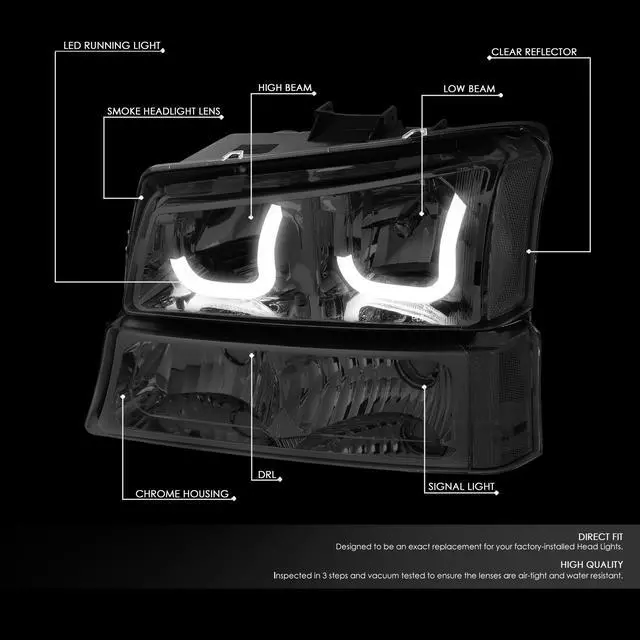 - Package Includes: 1 X Pair of Headlight & 1 X Pair of Parking / Turn Signal Lights (Driver and Passenger Side).