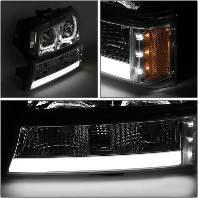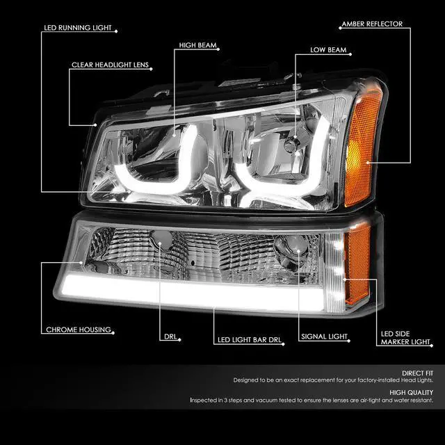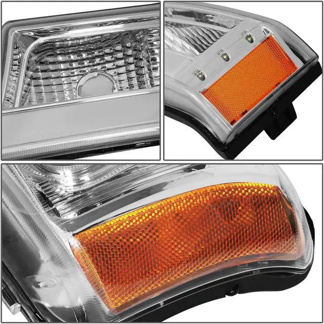 - HL-3DLED-CS03-AM-CH: Chrome Housing Amber Corner Headlight Set, with LED Light Bar Running Light on Signal / Parking Light Housing