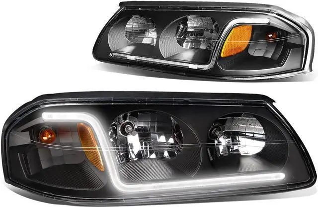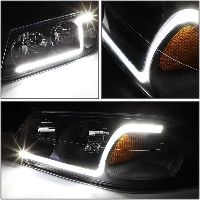DNA Motoring HL-LB-CI00-BK-AM For 2000 to 2005 Chevy Impala LED DRL Light Bar Headlight Black Housing Amber Corner Headlamp 01 02 03 04 Left + Right