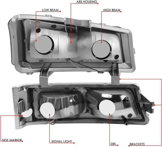 - •?This Item Includes?1 X Pair of Headlights (Left & Right) / 1 X Pair of Bumper Parking Lights (Left & Right)