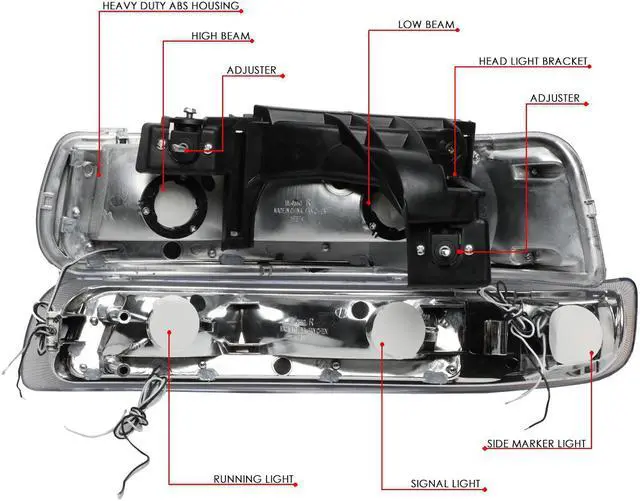 - Comes with a Complete Set of Turn Signal Lights (Driver and Passenger Side) and a Complete Set of Headlight (Driver and Passenger Side), Brings a Different Appearance to the Vehicle that Great for Show Use or to Replace Old and Worn Headlights.
