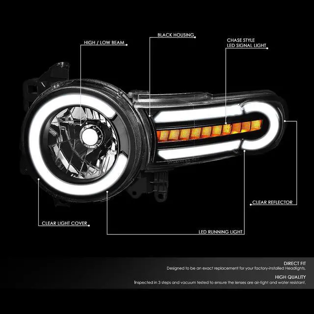 - LED Sequential Chasing Turn Signal ; White LED Running Light Strip (Requires Wiring to Existing Lights) ; Brings a Different Appearance to Vehicle thats Great for Show Use or to Replace Old and Worn Headlights;