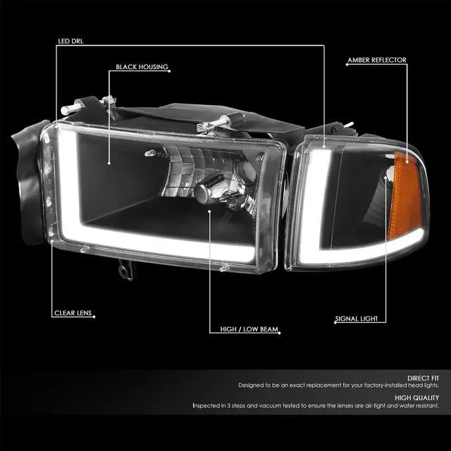 - DURABILITY & STRENGTH - ABS plastic black housing provides excellent resistance and durable lifespan. It can protect the headlight from bad weather condition such as rain and snow. Clear headlight lens feature with good transmission and high toughness.