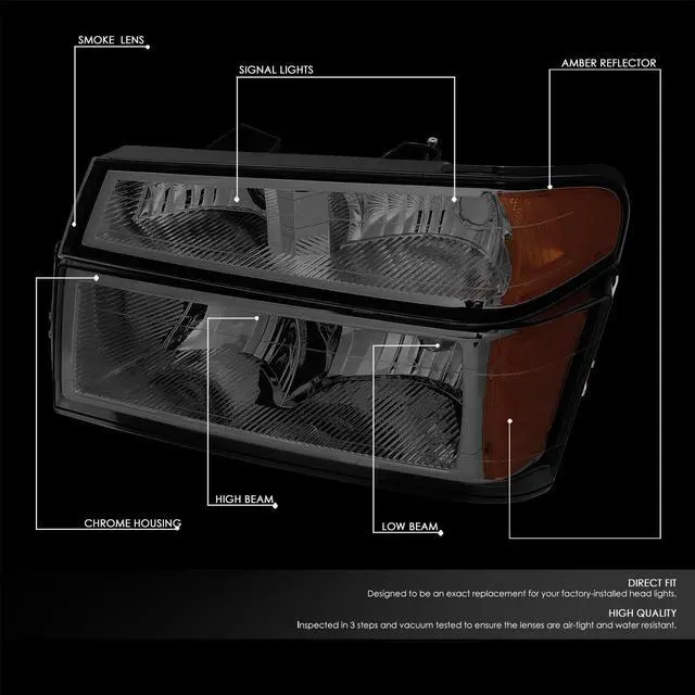 - DURABILITY & STRENGTH - ABS plastic black housing provides excellent resistance and durable lifespan. It can protect the headlight from bad weather condition such as rain and snow. Smoke headlight lens feature with good transmission and high toughness.