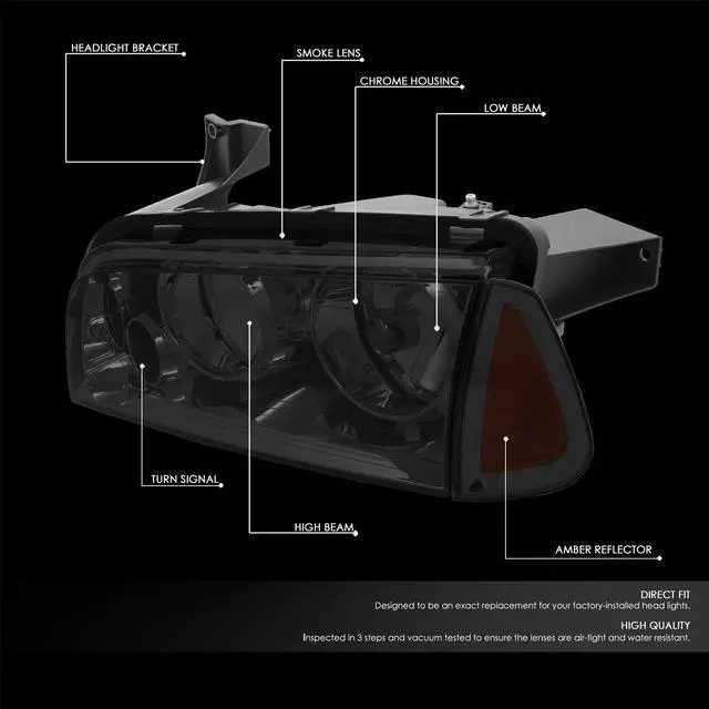 - Comes with Complete Set of Headlight (Driver and Passenger Side) , Plug-N-Play Operation, Direct OE Fitment or Replacement for the Stock Unit,Brings a Different Appearance to Veichle that Great for Show Use.Requires No Modification or Drilling.