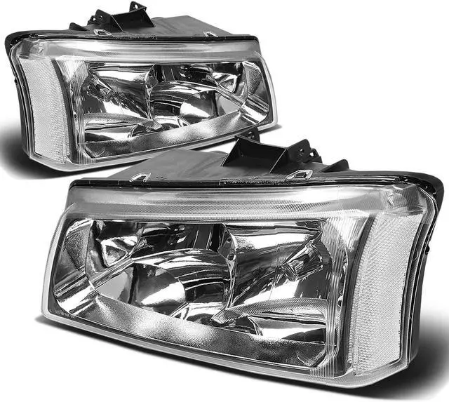 DNA Motoring HL-OH-CS03-2P-CH-CL1 For 2003 to 2006 Chevy Silverado Avalanche 1st Gen Headlight Chrome Housing Clear Corner Headlmap 04 05 Left + Right