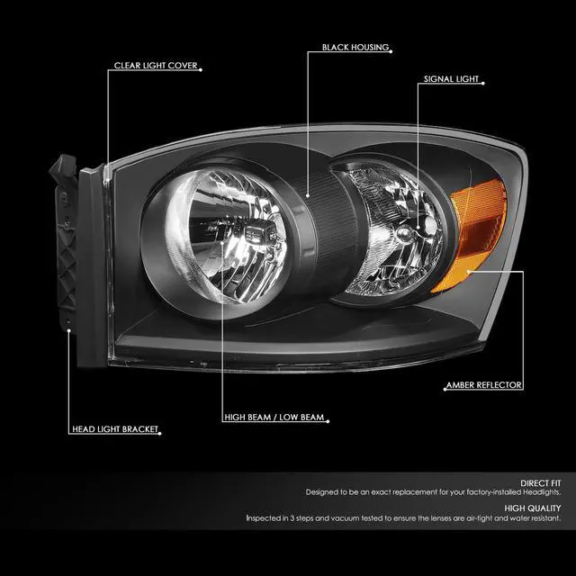 - •?*Compatible With?06-08 Ram 1500 / 06-09 Ram 2500 3500 / Fits Models with Halogen Headlamps Only / For 2009, Fit Old Body Style Only, Does NOT Fit New Body Style Models