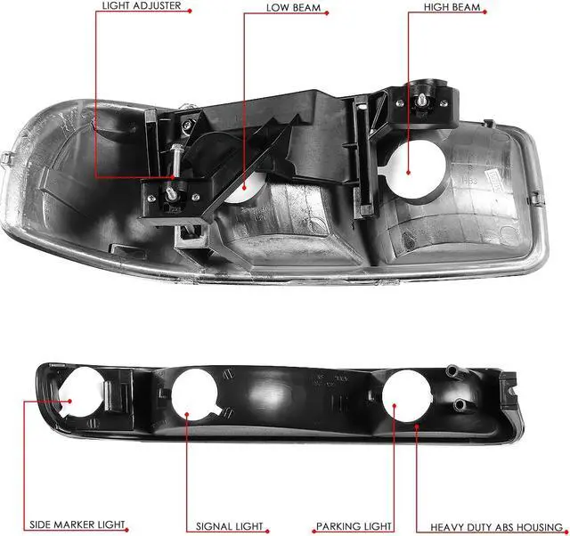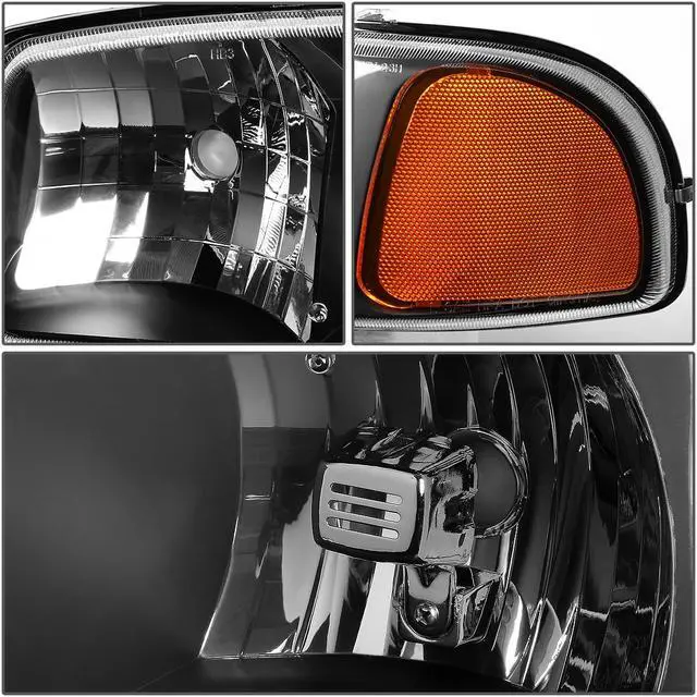 - PACKAGE INCLUDED - Pair of Black Housing / Amber Corner Headlights with Matching Bumper Lights; Uses 9005 high beam/ 9006 low beam bulbs(Bulbs Not Included)