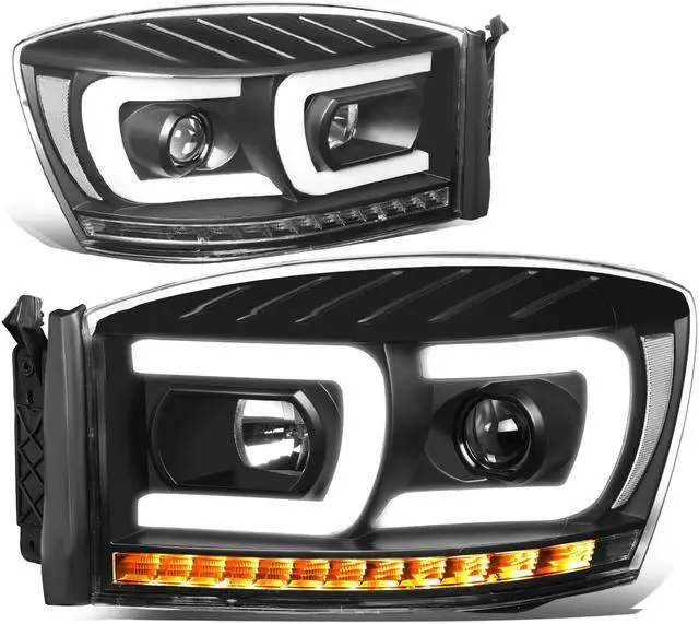DNA Motoring HL-HPL-RM06-G2-BK-CL1 For 2006 to 2009 Dodge Ram Truck 1500 2500 3500 Pair LED Sequential Turn Signal+Dual DRL Projector Headlight Lamps Black Housing Clear Corner 07 08