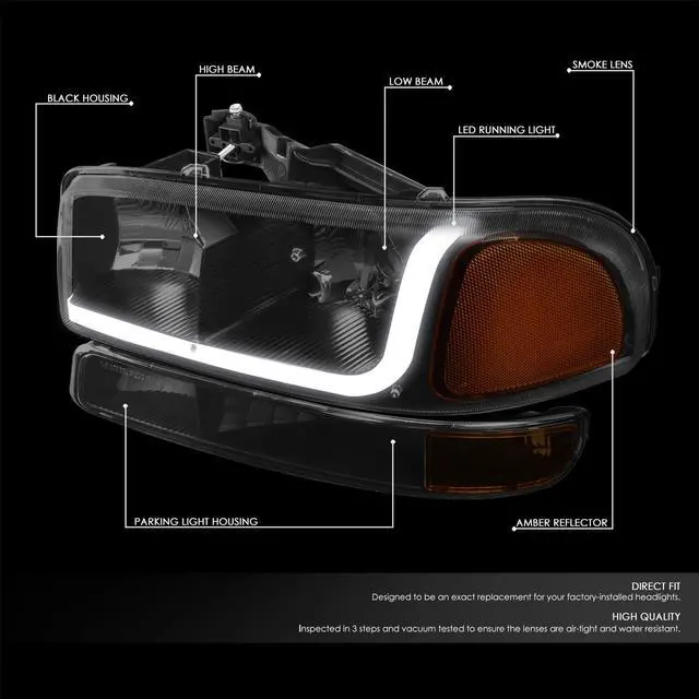 - This Item Includes1 X Pair of Headlights (Left & Right) / 1 X Pair of Bumper Lights (Left & Right)