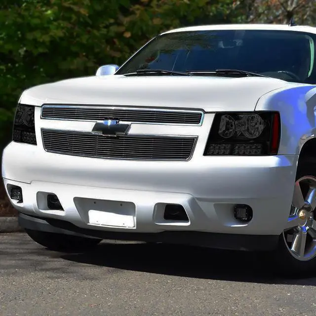 DNA Motoring HL-LED-CSA07-BK-SM-AM For 2007 to 2014 Chevy Tahoe Suburban Avalanche LED DRL+Turn Signal Projector Headlight Lamps Smoked Housing Amber Corner 08 09 10 11 12 13