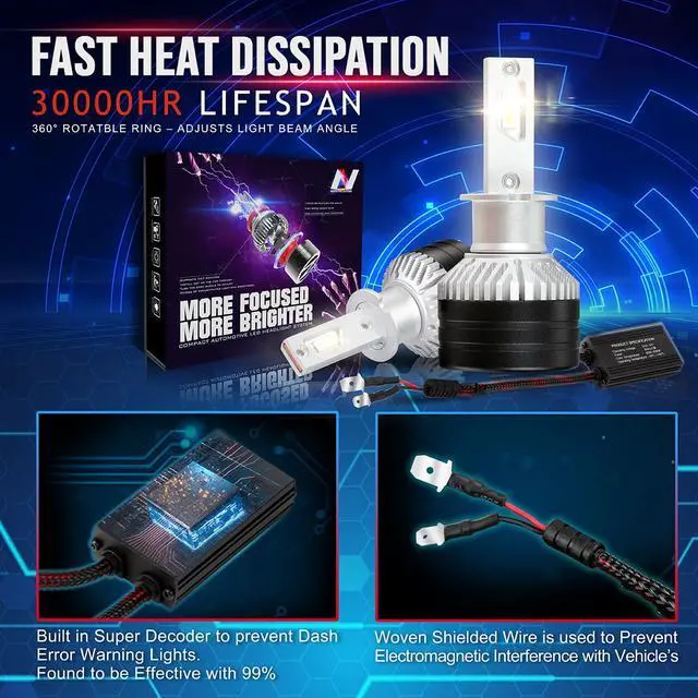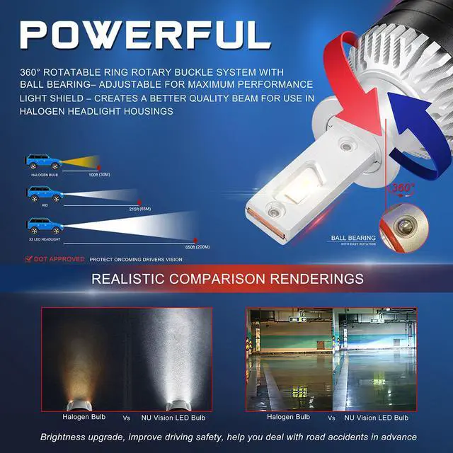 - ? High-Performance mute design with Adjustable Concentration and Brightness?10000 revolutions per minute. High-speed but stay quiet brings truly effective heat dissipation. The long-range design brings you a safe driving experience. Support 360° rotation with adjustable light concentration and brightness.