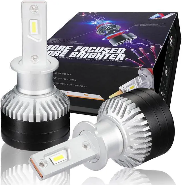 - ?650% Brighter Than Normal Halogen?High luminous efficacy CSP chips with 35W each bulb, Luminous Flux: L/6000 Lumens, H/6000 Lumens each bulb making them the brightest headlights bulbs. The new design improves light concentration and ensures maximum light output, without blinding or dazzles oncoming traffic.
