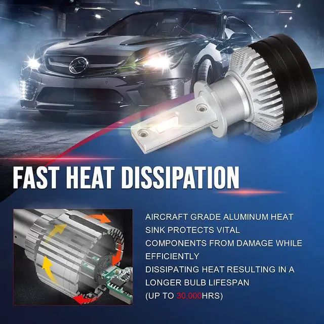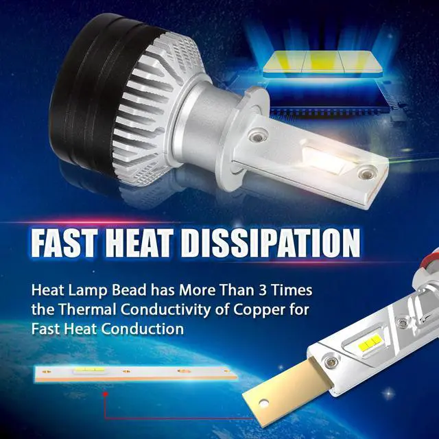 - ? Low Heat Design to Protect Headlight Lens?New material brings more than 3 times to fast heat conduction than a traditional cooper made one, decentralized heat lamp design makes this bulb more reliable. This low heat LED light bulb reduces potential heat to your headlight lens and make your headlight more durable than using normal light bulbs