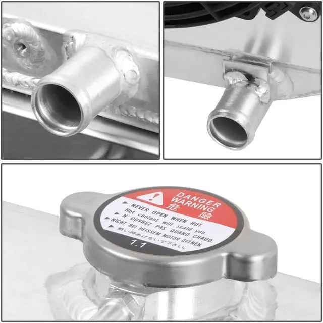 This Aluminum Radiator is designed to provide maximum cooling efficiency to prevent premature engine failure. Its light-weight, and high-heat transferring aluminum features a tube and fin design that, dramatically increases surface area that enables the heat to dissipate more efficiently. This Aluminum Radiator is at least 40% more efficient than stock ones. Most importantly, it has a much higher capacity for coolant than stock ones, which means that your cooling system will be more efficient and will be more resistant to temperature surges in racing applications.