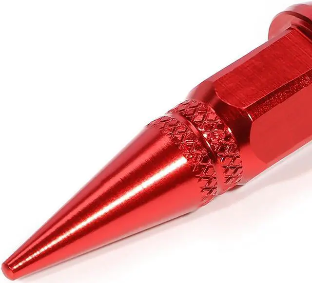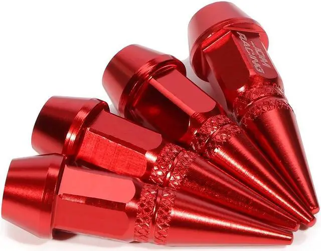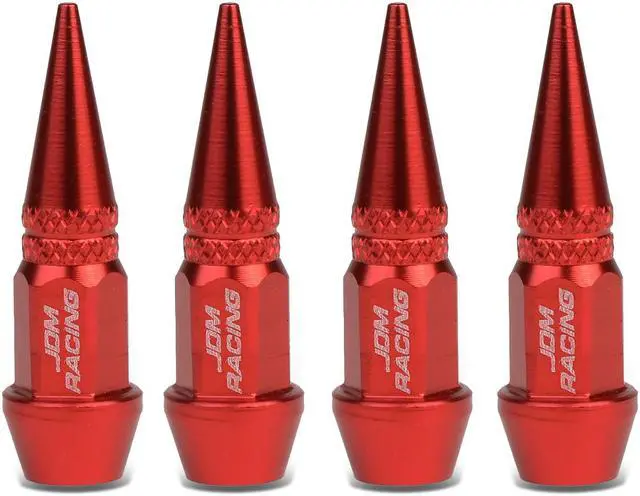 DNA Motoring VCAP-ZTL-9007-RD 45mm Anodized Aluminum Spike Style Red Tire Valve Stem Caps (Pack of 4)
