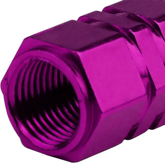 DNA Motoring VCAP-ZTL-9008-PP 17mm Hexagon Style Anodized Aluminum Purple Tire Valve Stem Caps (Pack of 4)