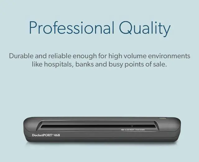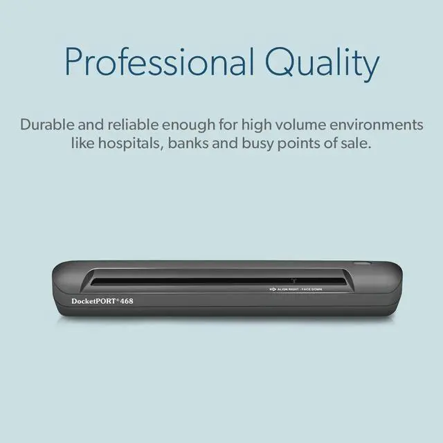 - Professional-Grade Quality: Built to withstand high-volume environments such as hospitals banks and busy points of sale the DocketPORT 468 guarantees durability and reliability in every scan.