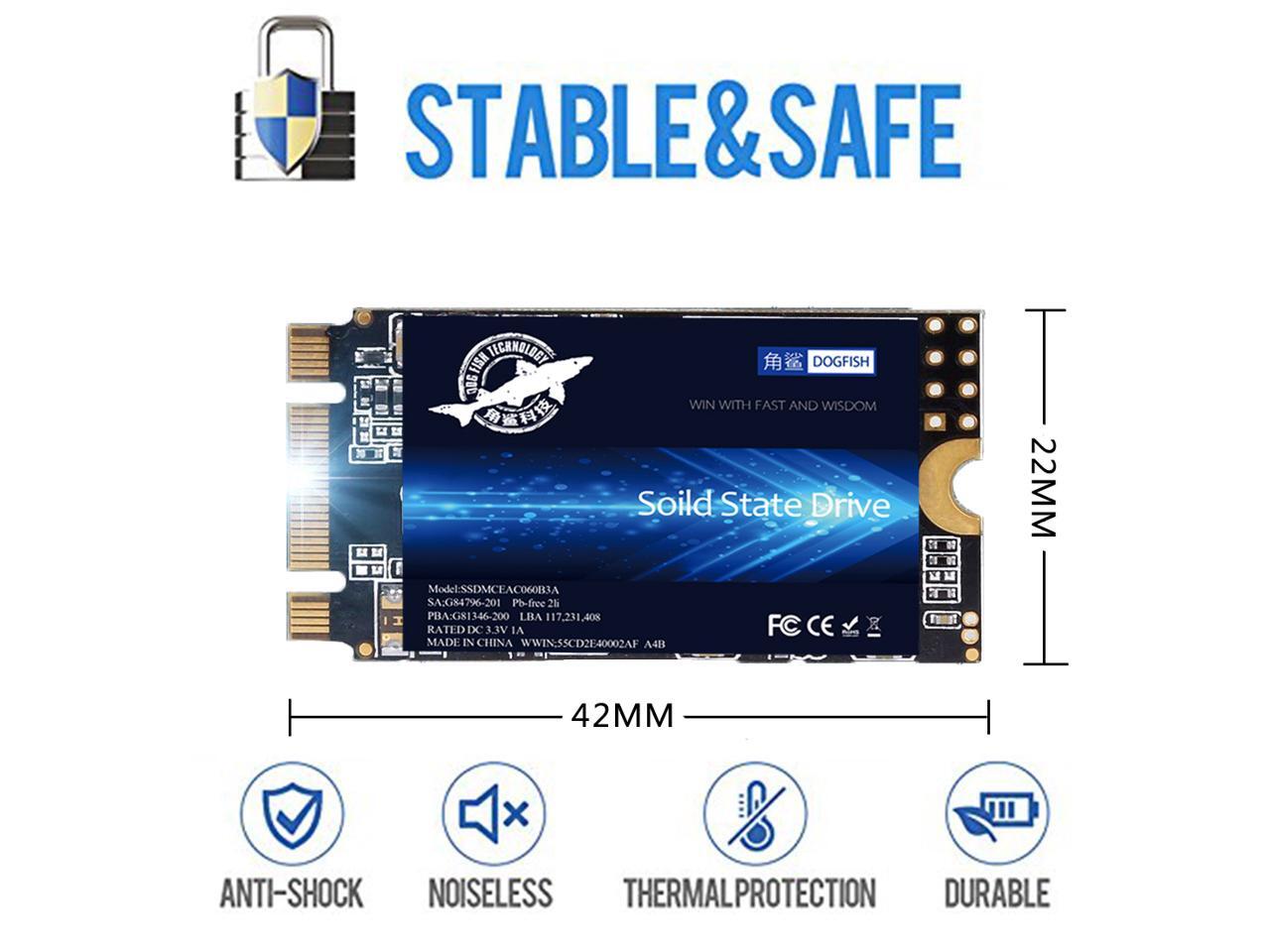 M.2 2242 SSD 500GB Dogfish 3D NAND TLC SATA III 6 Gb/s, Internal Solid State Drive Compatible with Desktop PC Laptop (M.2 2242 500GB)
