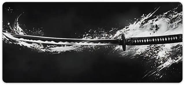 Japanese Samurai Sword Large Extended Gaming Mouse Pad (16x36in) - Durable Stitched Edges XXL Desk Mat for Keyboard and Mouse - Water Resistant & Non-Slip Rubber Base