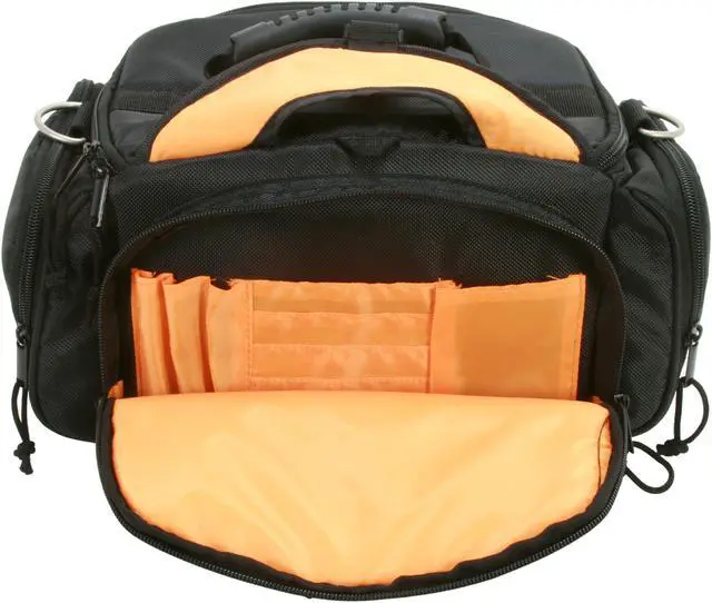 | Features | WB-3592: Durable nylon material Orange color inner compartment for easy identification Inner and outer compartments Rubber grip handle Velco compartment dividers with thick cushioning Removable shoulder strap Easy access zipper loop |