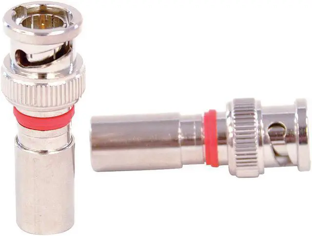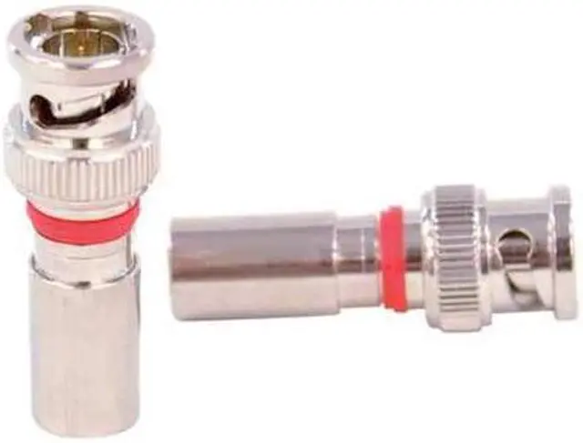 Coaxial Connector, Gender Male, Product Type Connector, Color Silver, Installation Method Compression, Compatible Coaxial Cable Type RG-6, Maximum Frequency 4 GHz, Maximum Impedance 75 ohm, Connector Type BNC, Finish Nickel-Plated, Features Made with Delrin Insulators, Material Brass, Resistance Properties Corrosion Resistant, Standards RoHS Compliant, Package Quantity 10. This item has been restricted from sale in the following state (s): []