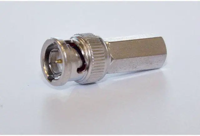 Coaxial Connector, Gender Male, Product Type Connector, Color Silver, Installation Method Twist-On, Compatible Coaxial Cable Type RG-6, Maximum Frequency 4 GHz, Maximum Impedance 50 ohm, Connector Type BNC, Finish Nickel-Plated, Material Brass, Resistance Properties Corrosion Resistant, Standards RoHS Compliant, Package Quantity 10. This item has been restricted from sale in the following state (s): []