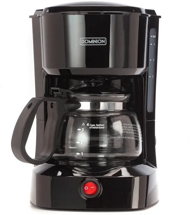 Dominion 4-Cup Coffeemaker Compact Coffee Pot Brewer Machine, Quiet Operation with On / Off LED Indicator Light, Convenient Cord Storage and Auto Pause Feature, Easy Anti-drip Coffeemaker with Coffee Pot and Removable Filter Basket for Office / Home, Black
