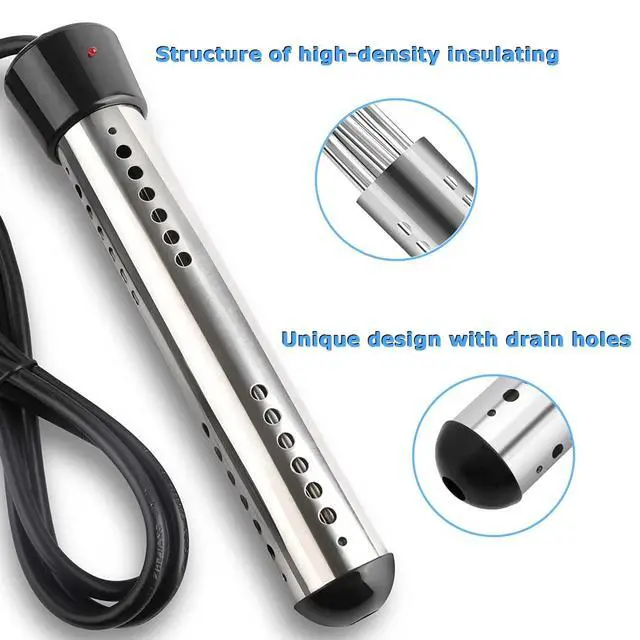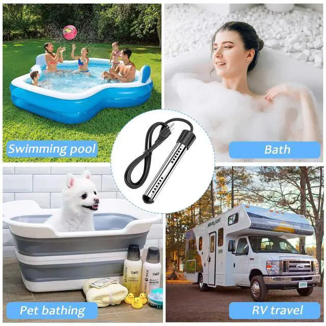 Portable & Widely Application- Immersed electric water heaters can be used in non-conductive containers such as buckets, basins, bathtubs, and mini inflatable swimming pools. With this immersion heater, it's more easy to enjoy a comfortable bathing, happy inflatable pool playing time, or warming foot bath even on cold winter days. It is also very suitable for farm feeding, pets bathing, winter car washing, and quickly get hot water with your RV when traveling or camping outside. Portable design, you can enjoy hot water anytime and anywhere.