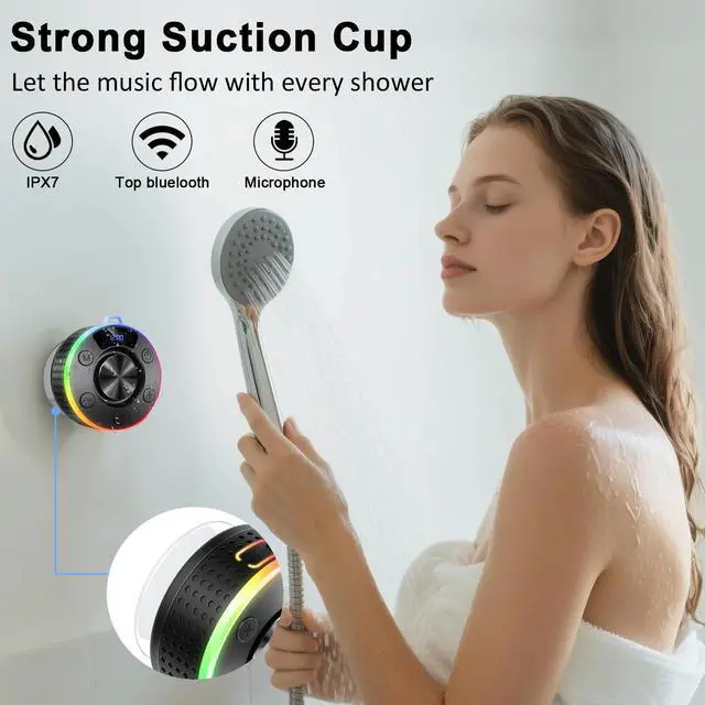 This shower speaker's waterproof rating is certified under the IEC 60529 IPX7 standard, and it maintains full functionality even under simulated short-term water immersion, offering reliable water resistance. Whether youre enjoying a relaxing shower, hosting a pool party, or listening by the beach or campsite, this portable speaker delivers stable performance and continuous playback. Its sealed casing and precision acoustic mesh effectively block water splashes, ensuring your music remains clear and consistent in any everyday environment.
