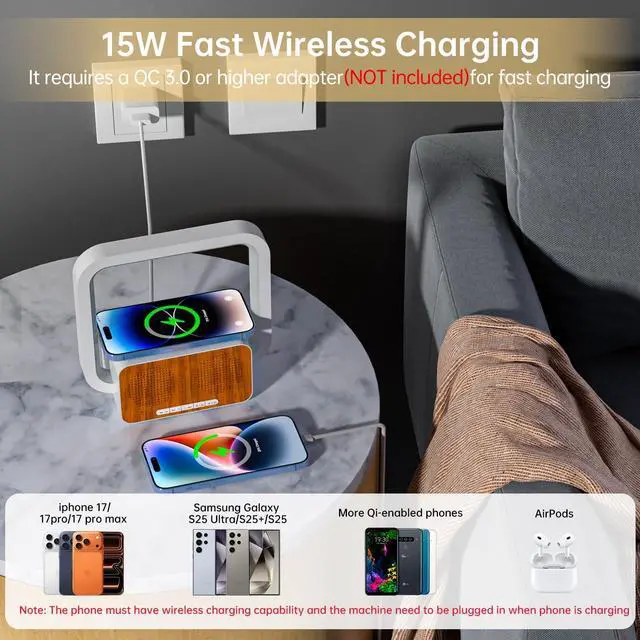 Support up to 15W wireless fast charging when using 9V/2A or QC2.0 or QC3.0 protocol-compliant charging adapter. Just rest your device on top for easy charging with no wires.