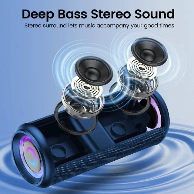 Portable Bluetooth Speaker, 2026 Bluetooth 5.4 Wireless Speaker with 20W HD Loud Stereo Sound, TWS Pairing, 20H playtime, RGB Lights, IP7, Built-in Mic, for Outdoor, Home, Beach, Party, Gift, Blue