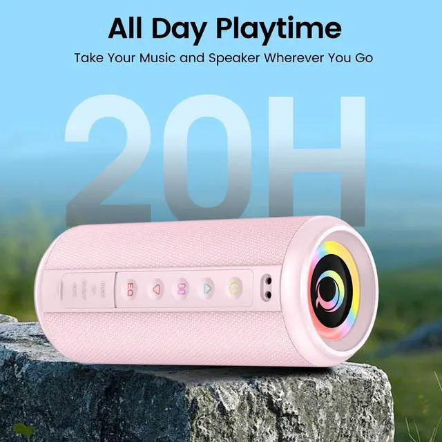 Portable Bluetooth Speaker with 20W Loud Stereo Sound, Bluetooth 5.4 Speaker Wireless with RGB Lights, IP7 Waterproof Speaker, TWS Pairing, Built-in Mic