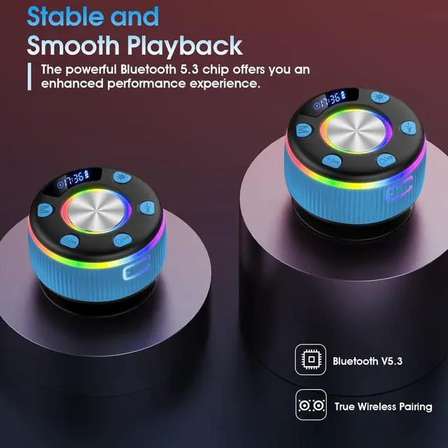 This detachable powerful suction cup allows the speaker to securely attach to bathroom walls, mirrors, or any smooth surface, making it ideal for all aquatic environments.
