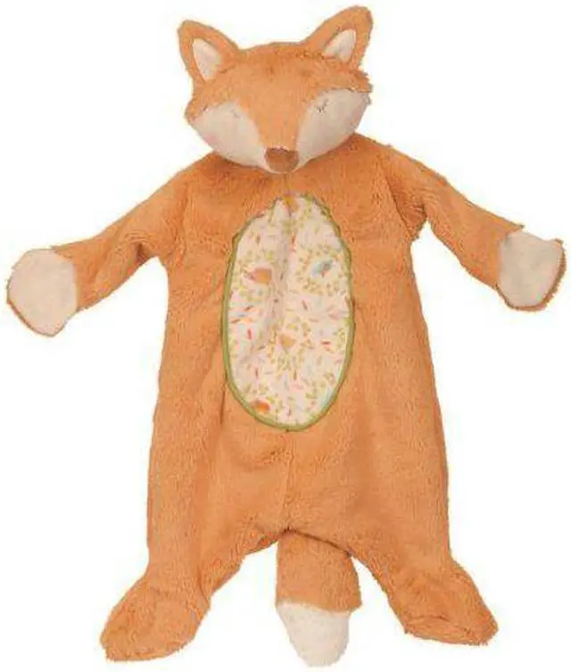 His relaxed expression and snuggly soft body will engage and delight Baby's senses. Satin accents and green piping around a playful woodland themed print add detail and fun to this lightweight, versatile lovey.
