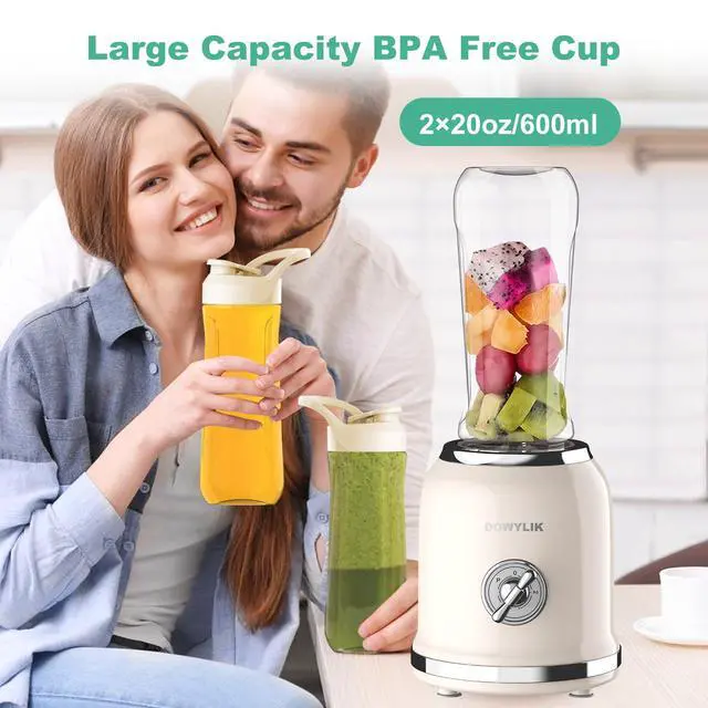This personal blender includes: 2 portable cups (both sizes: 20 oz), 304 stainless steel 6-leaf blades, 1motor base, 2 travel cup lids, and 2 seals, 1 ice tray, 1 Instruction manual.