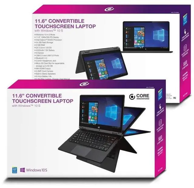 • 11.6" Convertible Touchscreen Laptop with Windows 10 S
