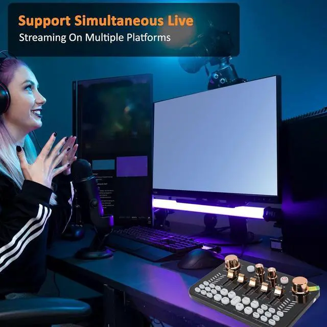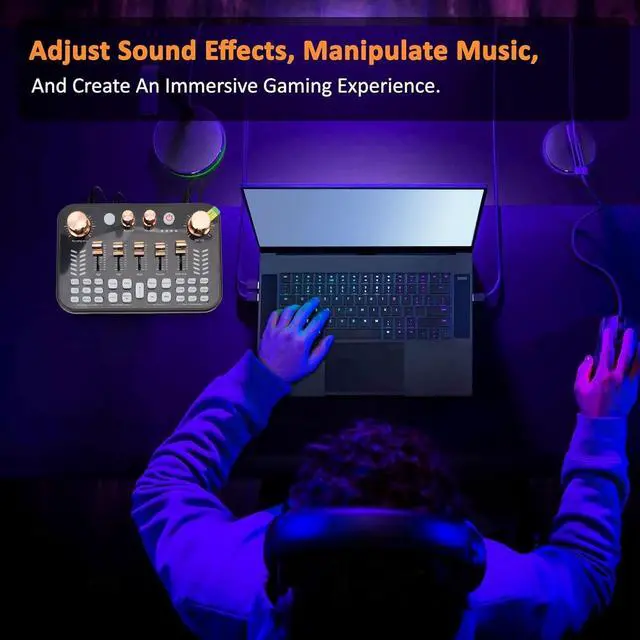 Gaming Audio Mixer, Sound Board for Pc Phone, with 3.5mm Microphone Input, with DJ Mixer Effects, Live Sound Card, for Streaming