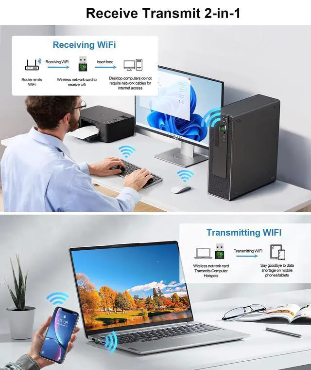2-IN-1 Wi-Fi 6 and Bluetooth 5.3 Adapter for PC/Laptop/Desktop