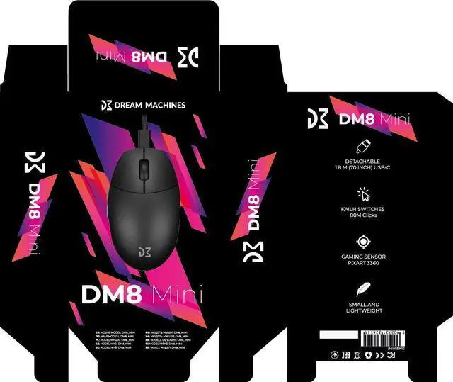 | Package Contents | DM8 Mini Mouse / USB Type-C to USB Type-A / User Manual |