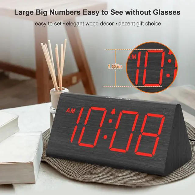 DreamSky wooden digital clock is a basic digital desk clock that delivers time in a big and concise way, which is easy to see from across the room, perfect for seniors with poor eyesight. The elegant wood design also serves as a cool room accessories & room decor for living room, bedroom & office.