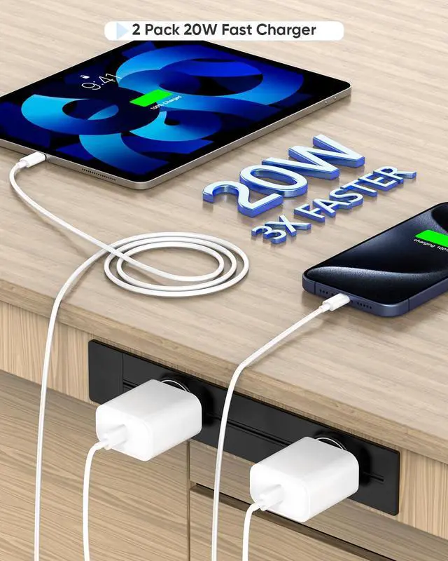 2*20W Fast Charger Block + 2*10 FT USB Type C Cable